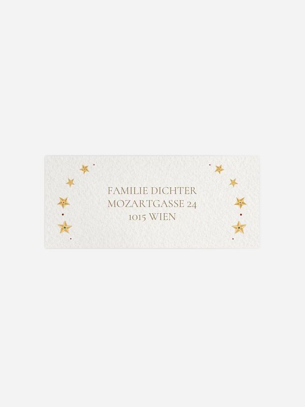 Gestalten Sie Ihre Postsendungen stilvoll und mühelos mit unseren personalisierbaren Absenderaufklebern "Himmlische Klänge"! Diese hochwertigen Aufkleber sind die perfekte Ergänzung zu unserer exklusiven Designserie und erleichtern Ihnen das Versenden von Briefen und Karten, indem sie das manuelle Beschriften per Hand überflüssig machen.