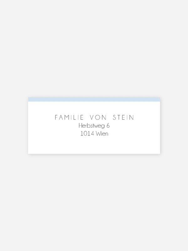 Praktisch & dekorativ: Diese selbstklebenden Absenderaufkleber gestalten Sie passend zur Geburtskarte „Manuskript Premium” ganz einfach im selben Design.