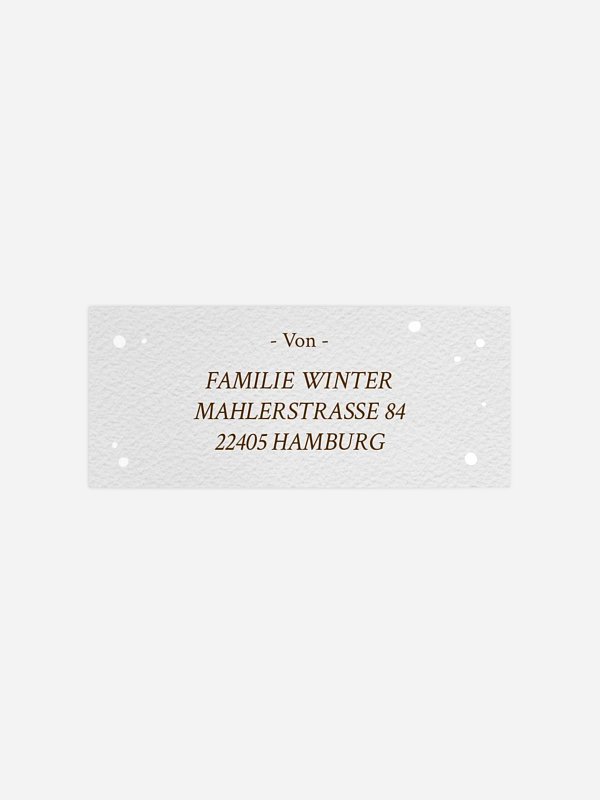 Gestalten Sie Ihre Postsendungen stilvoll und mühelos mit unseren personalisierbaren Absenderaufklebern "Schneemärchen"! Diese hochwertigen Aufkleber sind die perfekte Ergänzung zu unserer exklusiven Designserie und erleichtern Ihnen das Versenden von Briefen und Karten, indem sie das manuelle Beschriften per Hand überflüssig machen.