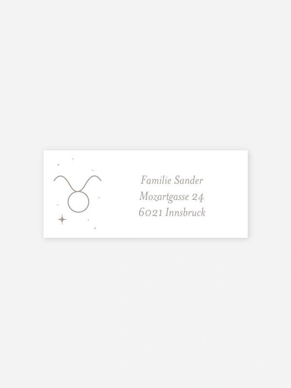 Unsere praktischen Absenderaufkleber im Design "Sternbild Stier" machen jeden Umschlag zum hübschen Blickfang.