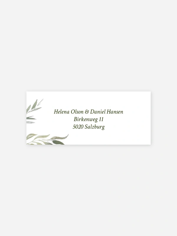 Gestalten Sie die selbstklebenden Absenderaufkleber "Botanical Gate" mit Ihrer eigenen Adresse. So sind Ihre Umschläge nicht nur praktisch beschriftet, sondern auch optisch perfekt abgerundet zu Ihrer Hochzeitseinladung.