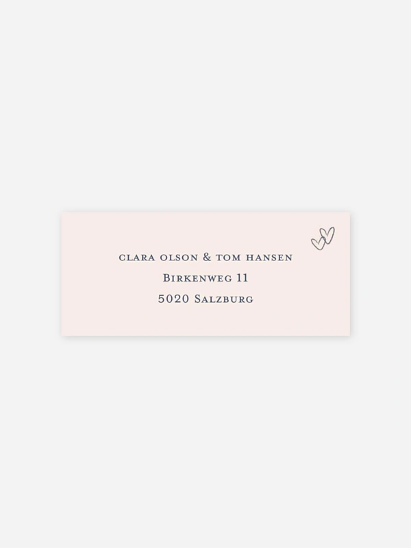 Gestalten Sie die selbstklebenden Absenderaufkleber "Immer und ewig" mit Ihrer eigenen Adresse. So sind Ihre Umschläge nicht nur praktisch beschriftet, sondern auch optisch perfekt abgerundet zu Ihrer Hochzeitseinladung.