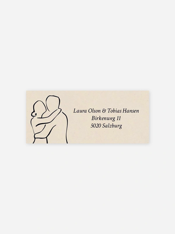 Gestalten Sie die selbstklebenden Absenderaufkleber "Liebespaar" mit Ihrer eigenen Adresse. So sind Ihre Umschläge nicht nur praktisch beschriftet, sondern auch optisch perfekt abgerundet zu Ihrer Hochzeitseinladung.