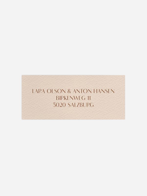Gestalten Sie die selbstklebenden Absenderaufkleber "Monogram muse" mit Ihrer eigenen Adresse. So sind Ihre Umschläge nicht nur praktisch beschriftet, sondern auch optisch perfekt abgerundet zu Ihrer Hochzeitseinladung