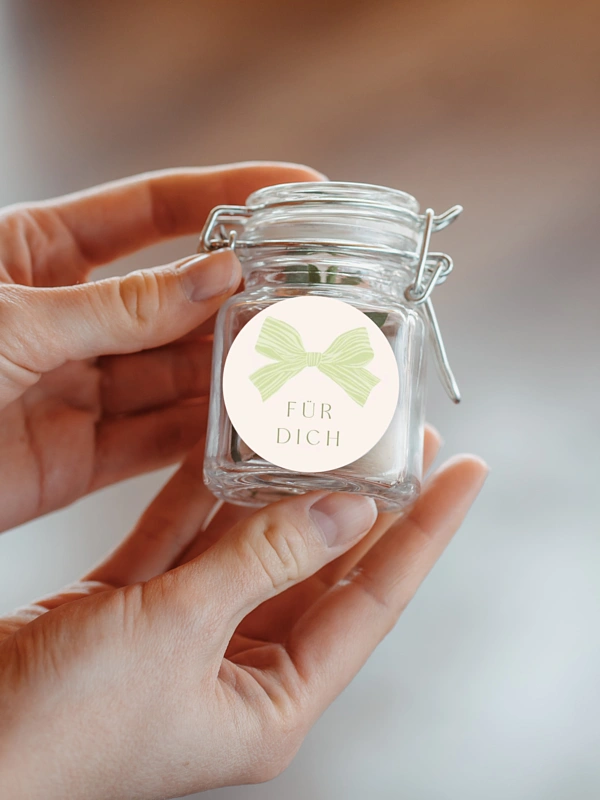 Personalisieren Sie die Hochzeitssticker "Band der Liebe" mit Ihren Namen und verschönern Sie damit die Gastgeschenke für Ihre Lieben.