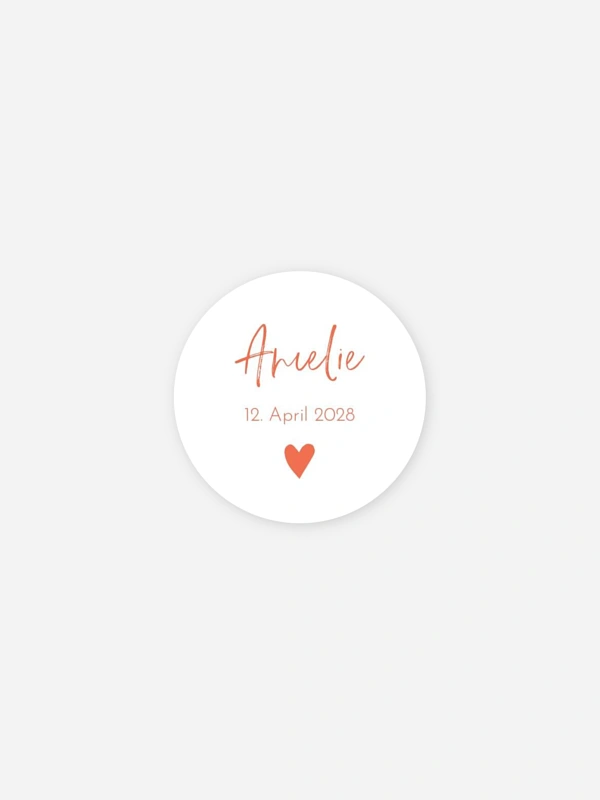 Mit dem runden Aufkleber "Kleines Herzchen" verleihst du deiner Post zur Geburt eine besonders liebevolle und persönliche Note. Das liebevolle Herz-Motiv passt wunderbar, um Willkommenswünsche oder kleine Gastgeschenke für deine Lieblingsmenschen zu verzieren.