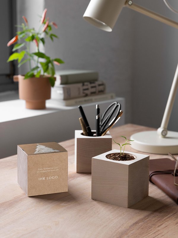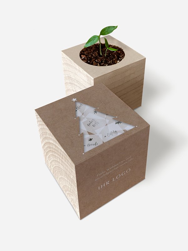Chili-Pflanze im Holzwürfel Happy Notes mit 3D-Effekt
