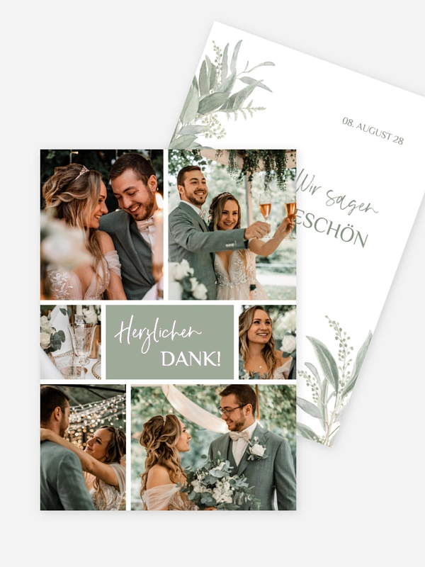 Bedanken Sie sich stilvoll und elegant bei Ihren Gästen mit der Dankeskarte "Greenery Day".