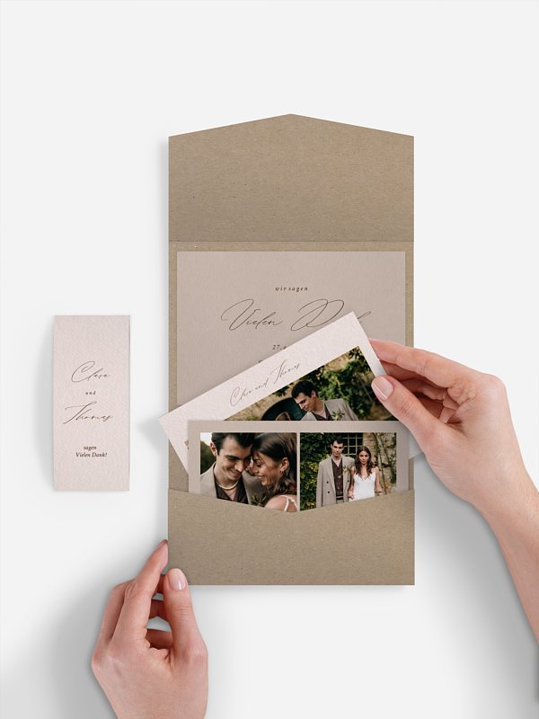 Mit der Dankeskarte "Pure Lines" kommen die Lieblingsfotos Ihres schönsten Tages besonders stilvoll zur Geltung.
