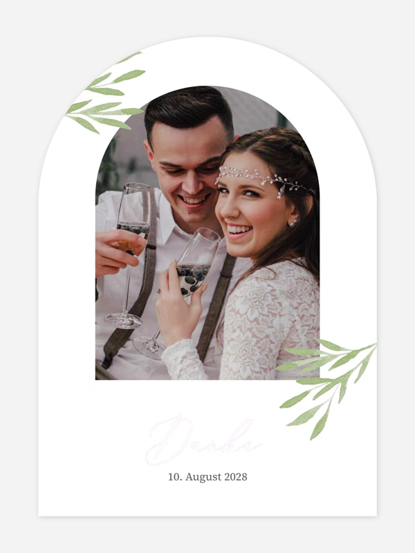 Mit eurer Danksagung Hochzeit "Zartes Grün" schickt ihr euren Liebsten ein herzliches Dankeschön, das eure gemeinsamen Glücksmomente noch einmal aufleben lässt. Die feinen botanischen Akzente umrahmen eure schönsten Hochzeitsfotos ganz sanft und machen eure Karte zu einem echten Lieblingsstück für eure Gäste. In unserem Gestaltungs-Tool kannst du deine Danksagung ganz persönlich gestalten und eure Geschichte mit euren eigenen Worten weitererzählen. Wir unterstützen euch mit hochwertigen Papieren und einer schnellen Lieferung, damit eure liebevolle Botschaft schon bald bei euren Lieblingsmenschen ankommt. Gestalte jetzt dein Set direkt online.