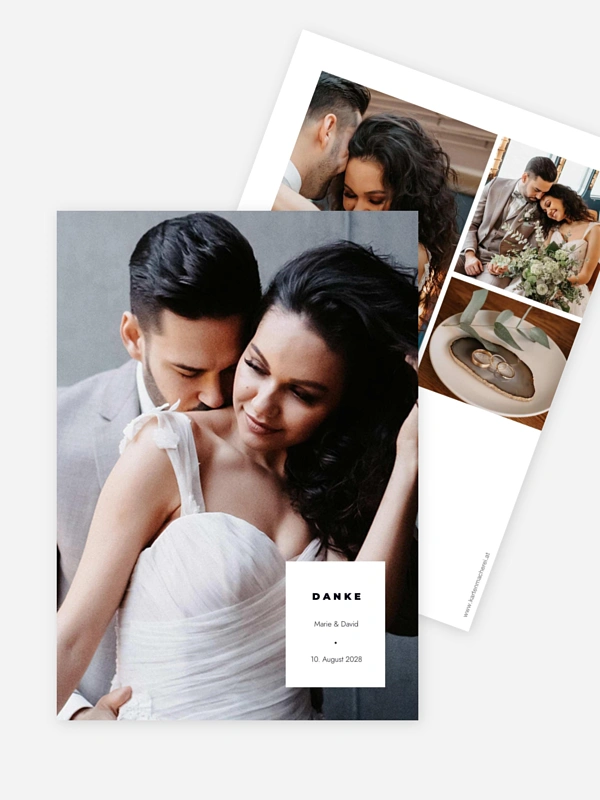 Mit der Karte "Zartes Medaillon" teilt ihr eure innigsten Hochzeitsmomente auf eine besonders stilvolle Weise mit euren Lieblingsmenschen. Das elegante Design rahmt eure schönsten Aufnahmen liebevoll ein und lässt die emotionale Tiefe eures großen Tages noch einmal aufleben.