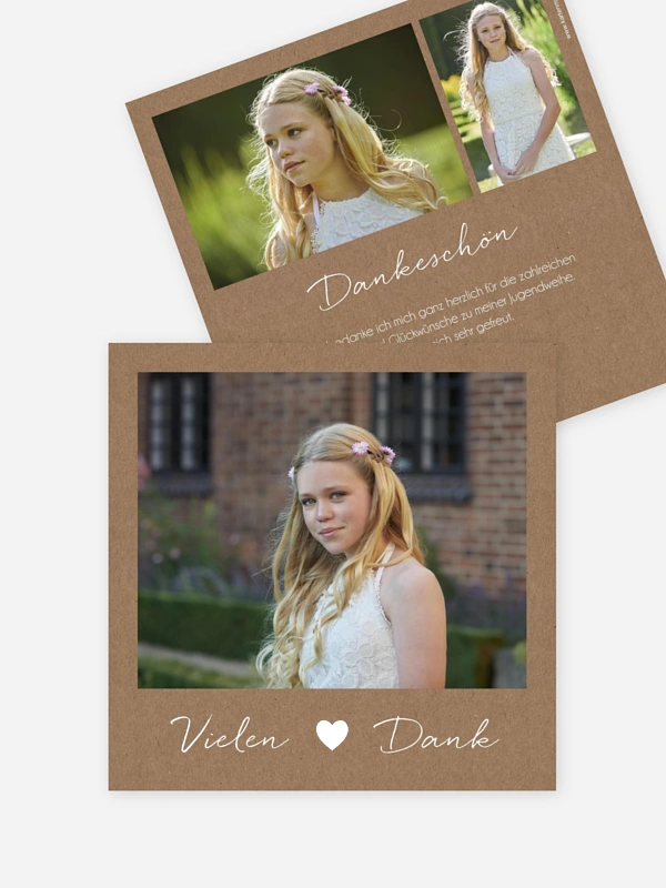 Vielen Dank für die gemeinsam verbrachte Zeit, die Geschenke und lieben Worte: Nach der Jugendweihe bedanken Sie sich mit der Danksagung "Bohemian Chic”: Eine stilvolle, klassische Karte, die als wunderbare Foto-Erinnerung noch lange Freude bereiten wird.