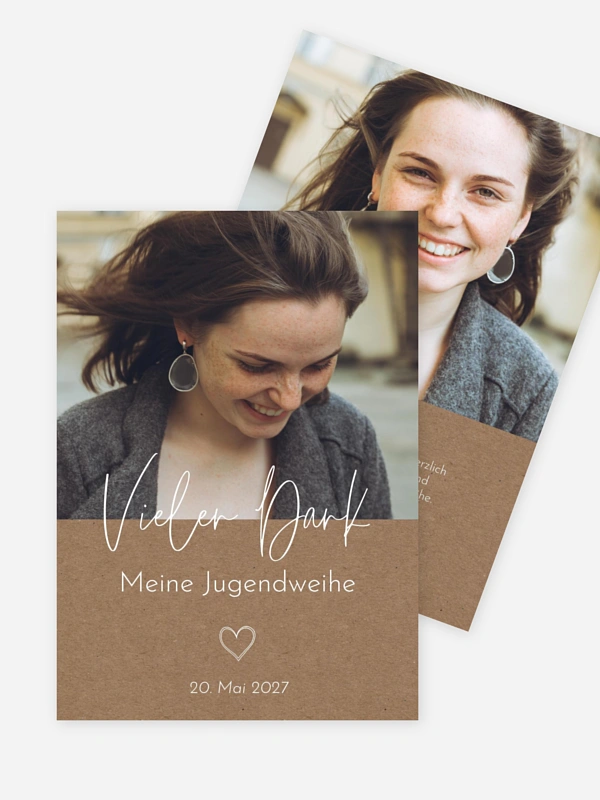 Der perfekte Abschluss eines besonderen Tages: Nach der Jugendweihe können Sie mit der Danksagung "Symbols of Love" allen Angehörigen und Freunden einen Fotogruß mit persönlichen Worten des Dankes zusenden.