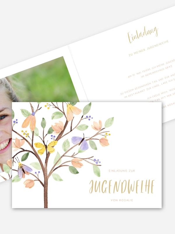 Einladung Jugendweihe Butterfly Tree