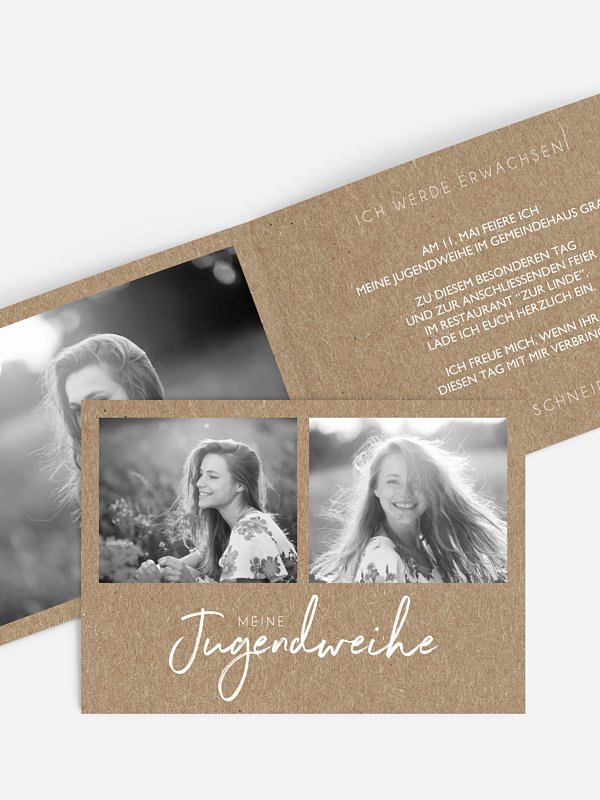 Die Einladung zur Jugendweihe "Grosser Tag Kraftpapier" aus echtem Kraftpapier ist nicht nur ein wunderschöner Blickfang, sondern überzeugt auch mit ganz besonderer Haptik.