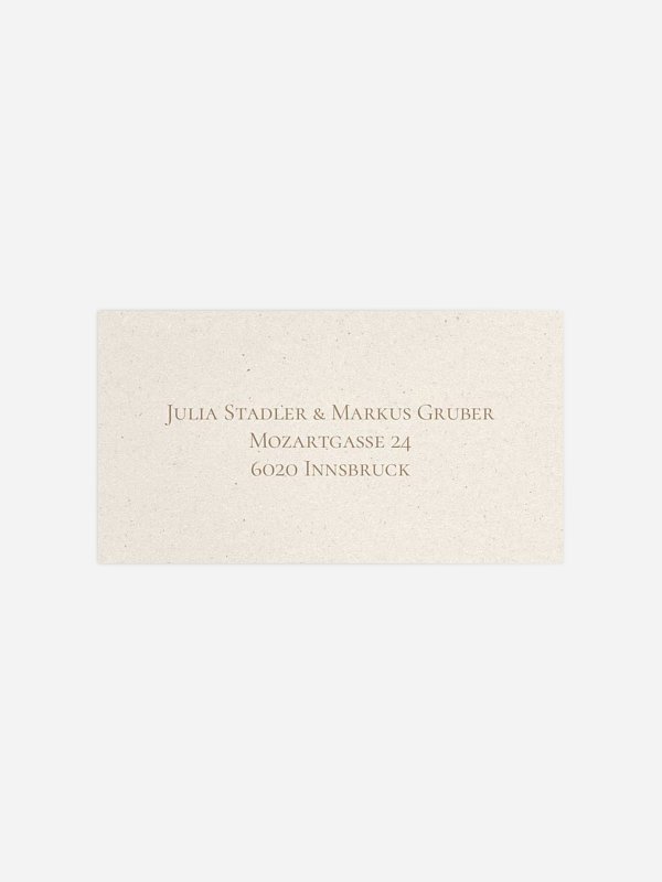 Personalisieren Sie die selbstklebenden Empfängeraufkleber "A Promise" mit den Adressen Ihrer Gäste und bringen Sie sie direkt auf den Umschlägen an – schnell, ordentlich und stilvoll.