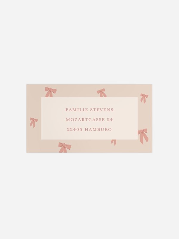 Entdeckt die süßeste Kooperation des Jahres! Wenn die zauberhaften Designs der dänischen Baby-Marke Cam Cam Copenhagen auf unsere liebevoll gestalteten Geburtskarten treffen, entsteht etwas ganz Besonderes für euren unvergesslichen Moment. Mit den selbstklebenden Empfängeraufklebern "Bows 1" geht das Adressieren deiner Karten wie von selbst.