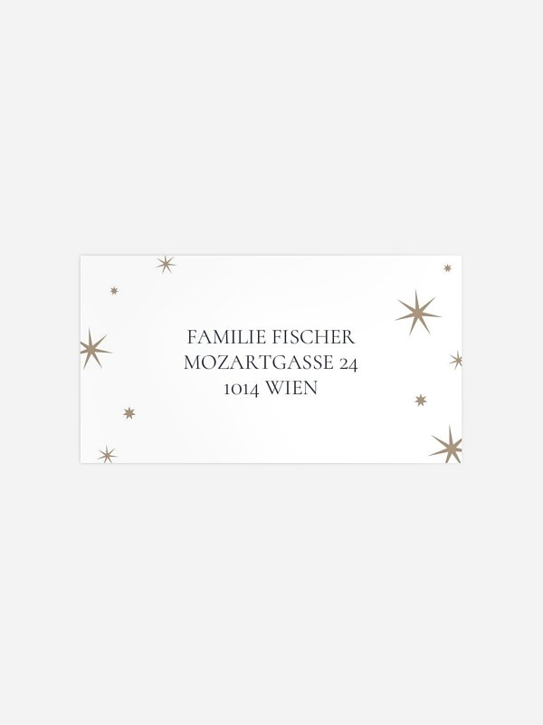 Gestalten Sie Ihre Postsendungen stilvoll und mühelos mit unseren personalisierbaren Empfängeraufklebern "Funkelglück"! Diese hochwertigen Aufkleber sind die perfekte Ergänzung zu unserer exklusiven Designserie und erleichtern Ihnen das Versenden von Briefen und Karten, indem sie das manuelle Beschriften per Hand überflüssig machen.