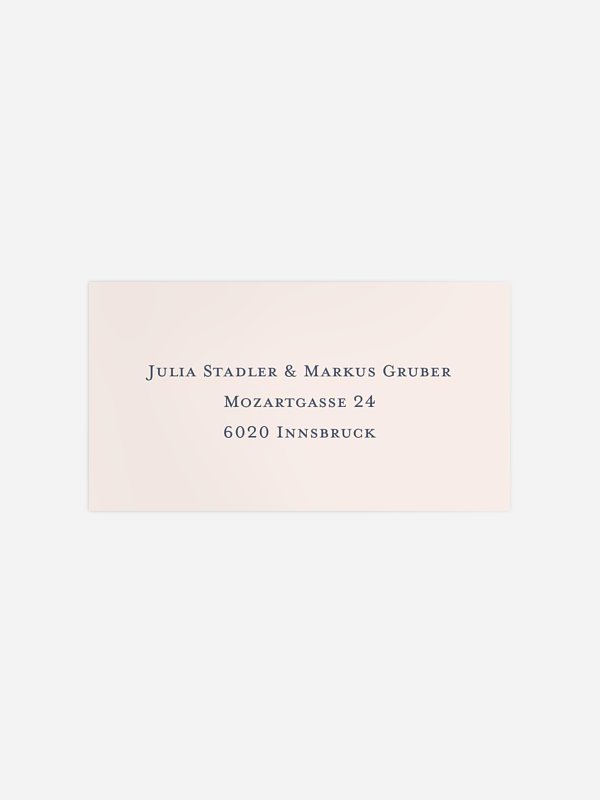 Personalisieren Sie die selbstklebenden Empfängeraufkleber "Immer und ewig" mit den Adressen Ihrer Gäste und bringen Sie sie direkt auf den Umschlägen an – schnell, ordentlich und stilvoll.