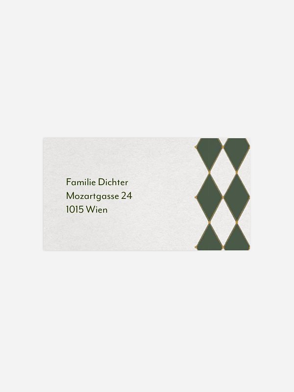Gestalten Sie Ihre Postsendungen stilvoll und mühelos mit unseren personalisierbaren Empfängeraufklebern "Rauten"! Diese hochwertigen Aufkleber sind die perfekte Ergänzung zu unserer exklusiven Designserie und erleichtern Ihnen das Versenden von Briefen und Karten, indem sie das manuelle Beschriften per Hand überflüssig machen.