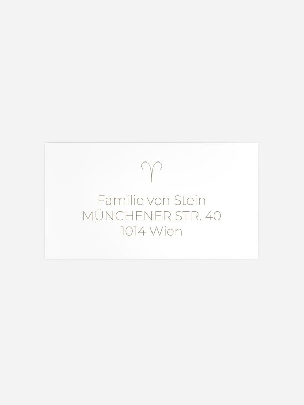 Mit den selbstklebenden Empfängeraufklebern "Sternzeichen Widder" wird das Adressieren zum Kinderspiel. Einfach aufkleben – und schon sind die Grüße stilvoll und im Handumdrehen versandbereit.