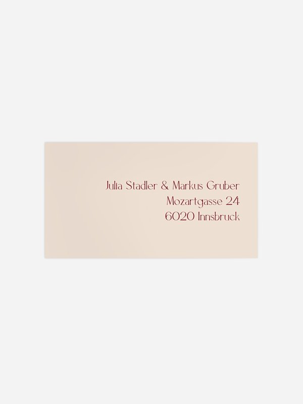 Personalisieren Sie die selbstklebenden Empfängeraufkleber "Traumtag" mit den Adressen Ihrer Gäste und bringen Sie sie direkt auf den Umschlägen an – schnell, ordentlich und stilvoll.