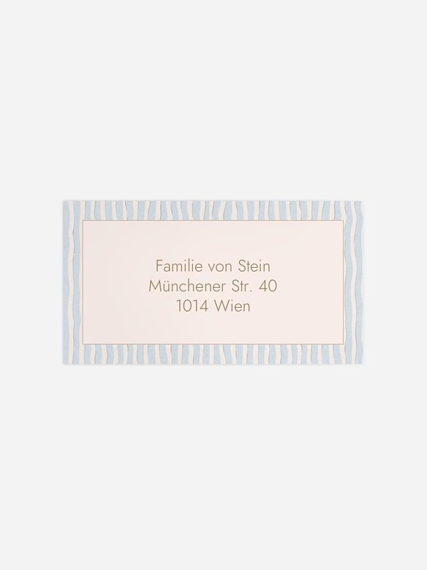 Mit den selbstklebenden Empfängeraufklebern "Wavy Stripes" wird das Adressieren zum Kinderspiel. Einfach aufkleben – und schon sind die Grüße stilvoll und im Handumdrehen versandbereit.