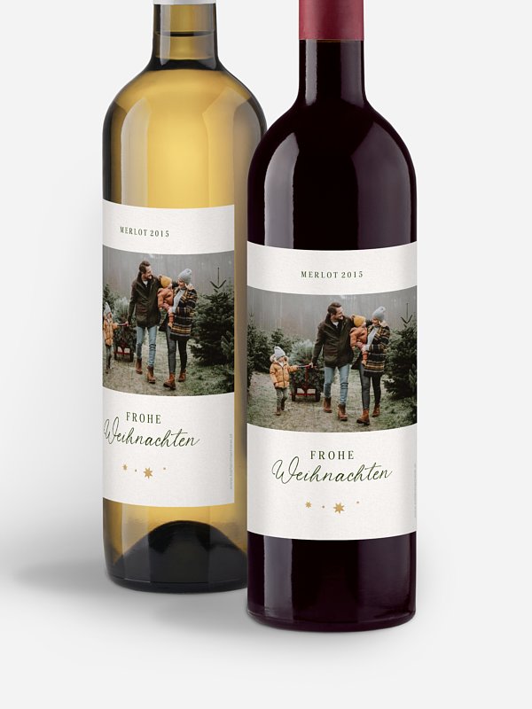 Ob für Wein, Champagner, hausgemachten Likör oder andere Getränke – mit unseren personalisierbaren, weihnachtlichen Flaschenetiketten "Weihnachtliche Sterne" machen Sie aus jeder Flasche ein einzigartiges Geschenk, das sowohl stilvoll als auch persönlich ist. Beeindrucken Sie Ihre Familie, Freunde oder Kollegen mit diesem besonderen Detail und bringen Sie festlichen Glanz in Ihre Weihnachtszeit! Wählen Sie zusätzlich zwischen einer eleganten Silber- oder Goldveredelung, um Ihre Etiketten noch festlicher und edler zu gestalten. Diese luxuriösen Veredelungen verleihen Ihren Flaschen einen Hauch von Glamour und machen sie zu einem echten Highlight unter dem Weihnachtsbaum.