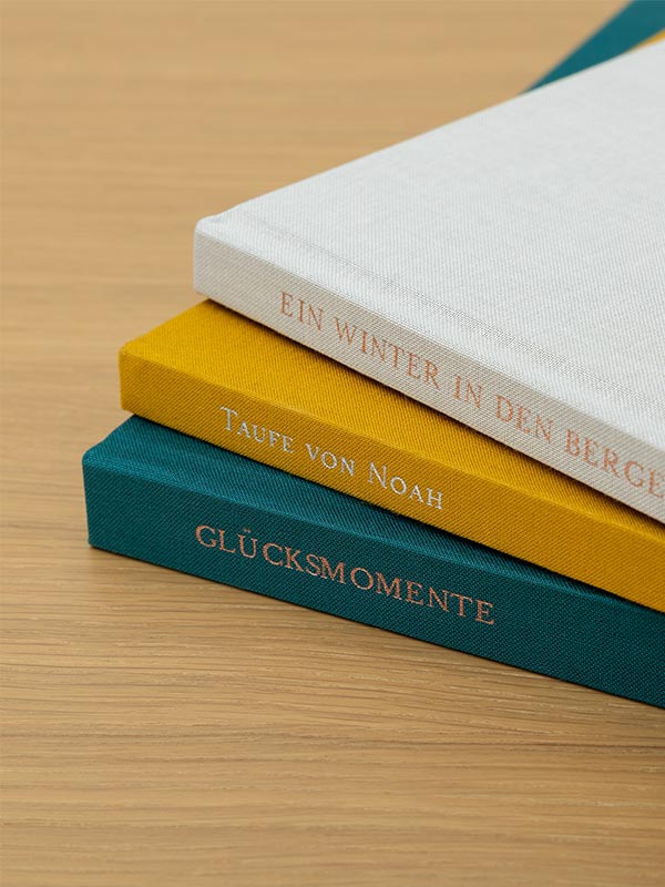 Unser Team hat sorgfältig erstklassige Stoffe ausgewählt, um die Einbände der Fotobücher zu veredeln. So bleibt Ihr Fotobuch über viele Jahre hinweg schön und beständig.