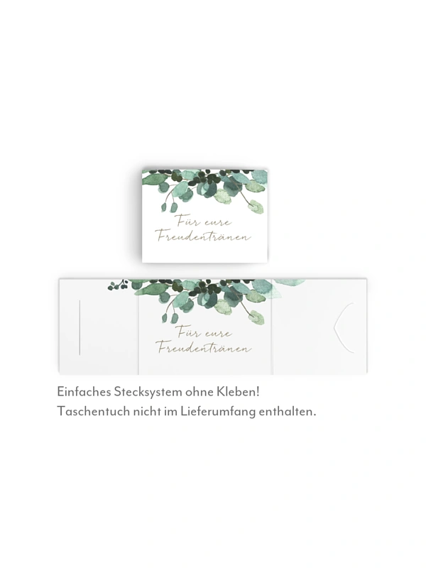 Für die Freudentränen bei der Trauung – die schönen Taschentücher-Banderolen im Design "All The Greenery".