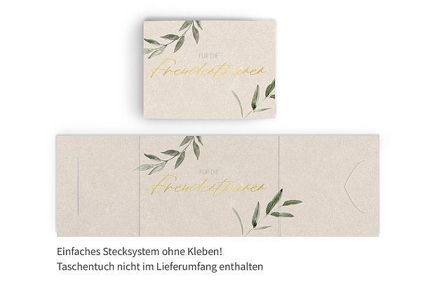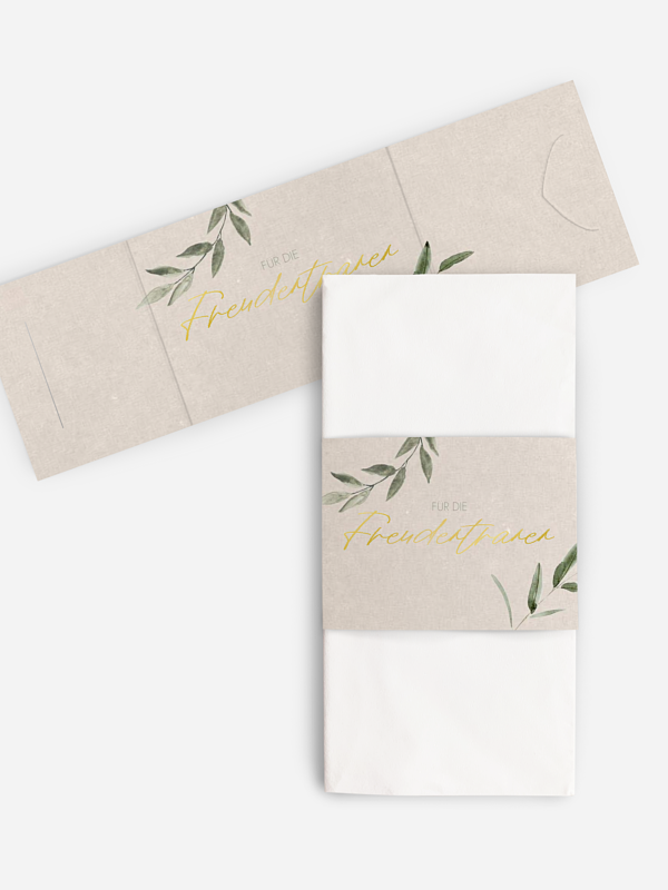 Gestalten Sie die hübschen Taschentuchhüllen "Green Dream" individuell – perfekt für Freudentränen und kleine emotionale Momente während Ihrer Zeremonie.