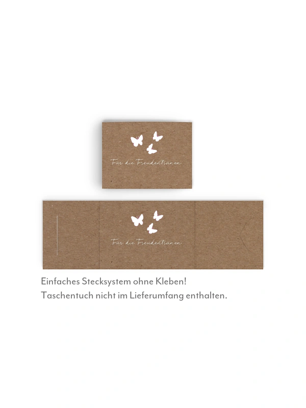 Die Banderolen für Freudentränen-Taschentücher aus der Serie "Herzflattern" helfen Ihren Gästen charmant durch die emotionalen Momente Ihrer Trauung.