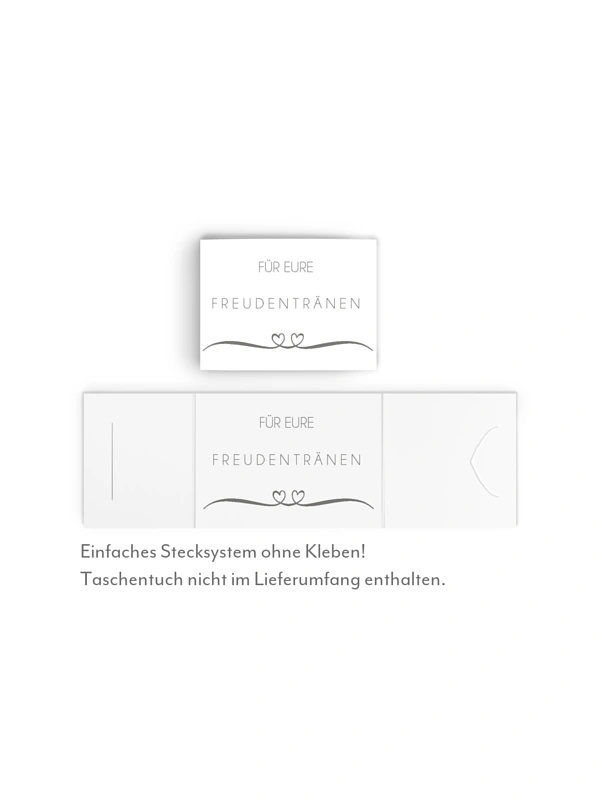 Für alle Gäste die während Ihrer Trauzeremonie ein paar Freudentränen vergießen werden: Die Banderolen für Taschentücher "Herzklopfen Premium".