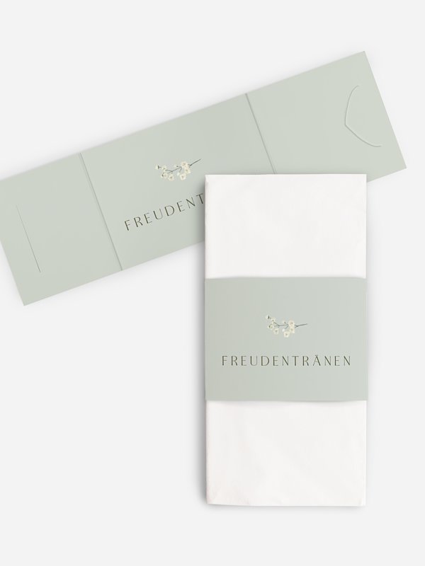 Gestalten Sie die hübschen Taschentuchhüllen "Love in Bloom" individuell – perfekt für Freudentränen und kleine emotionale Momente während Ihrer Zeremonie.