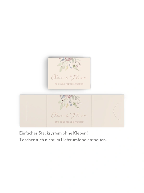 Für alle lieben Gäste die während Ihrer Trauzeremonie ein paar Freudentränen vergießen werden: Die floralen Banderolen für Taschentücher "Wildflower Dance".