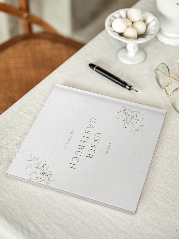 Bewahren Sie bleibende Erinnerungen an Ihren großen Tag mit dem Gästebuch "Love in Bloom". Ihre Gäste können persönliche Worte, Zeichnungen oder Fotos hinterlassen. Hinweise: Die Seiten sind weiß und glatt – ideal für Stifte, Marker oder Filzstifte ohne Durchdruck. Farben und Motive entsprechen der Darstellung im Gestaltungstool. Spitze oder Spitzeffekte sind rein gedruckt. Das Gästebuch wird separat verschickt.