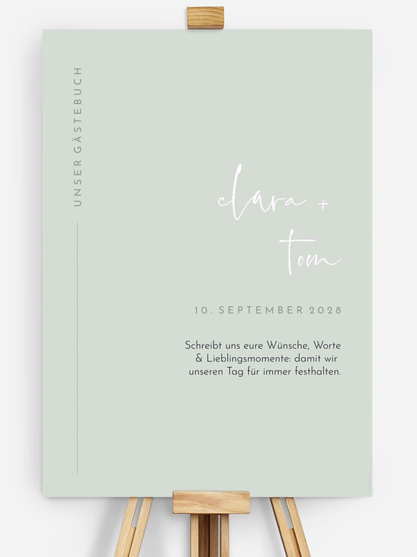 Mit dem Gästebuch Poster "Modern Type" gibst du euren Lieblingsmenschen einen schönen, klaren Rahmen für Wünsche, Worte und kleine Anekdoten – und sammelst Erinnerungen, die ihr später immer wieder gern hervorholt. Das reduzierte Typo-Design wirkt modern und lässt den handgeschriebenen Botschaften ganz viel Raum. Ob als Gästebuch zur Hochzeit oder als liebevolle Alternative zum klassischen Gästebuch: Hier darf jede Nachricht einfach echt sein. Du konfigurierst alles ganz unkompliziert im Gestaltungs-Tool, und wir sorgen für hochwertige Druckqualität sowie schnelle Lieferung.