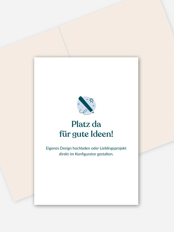 Mit der Geburtskarte "Eigenes Design" gestaltest du die Ankündigung eures kleinen Wunders genau so, wie sie sich für dich richtig anfühlt. Dein Lieblingsmotiv, ein Herzensfoto oder ein kreatives Projekt – alles findet hier seinen Platz und wird zu deiner ganz persönlichen Geburtskarte. Im Gestaltungs-Tool kannst du deine Ideen unkompliziert hochladen und Schritt für Schritt deine individuelle Geburtskarte gestalten. Unsere hochwertigen Drucke bringen jedes Detail liebevoll zur Geltung und du kannst dir sogar eine kostenlose Musterkarte sichern, bevor du dich entscheidest. Gestalte jetzt dein eigenes kleines Kunstwerk direkt online.