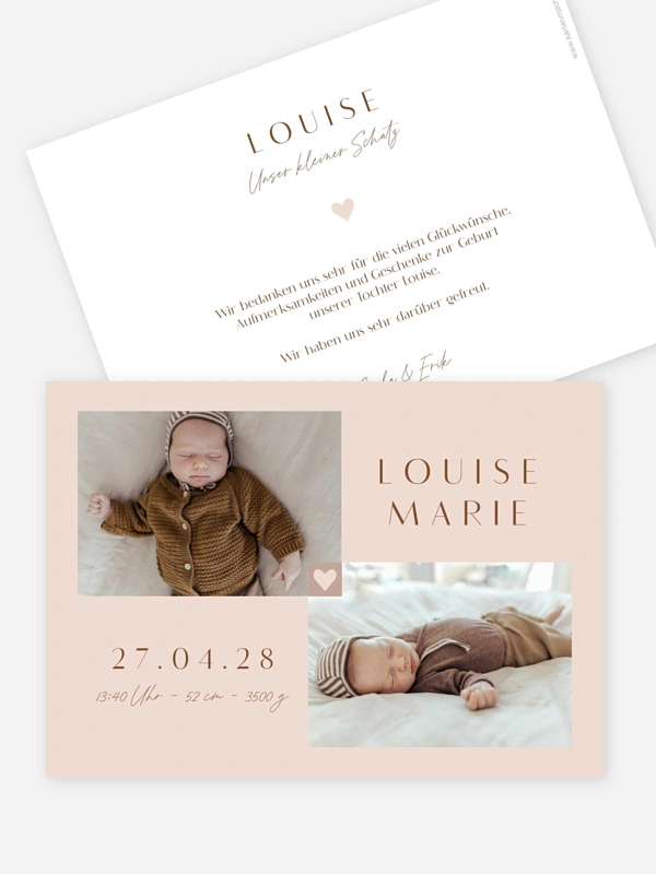 Mit der Geburtskarte "Herz aus Gold" teilst du die schönsten ersten Momente deines Babys auf eine besonders liebevolle Art. Das sanfte Design bringt Wärme und Nähe zum Ausdruck und lässt deine Freude ankommen wie eine kleine Umarmung. Dank hochwertiger Papiere und bester Druckqualität bleibt die Karte ein bleibendes Erinnerungsstück für dich und deine Liebsten.
