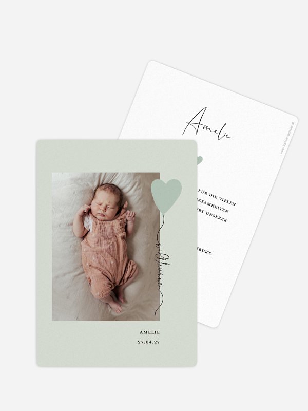 Die Geburtskarte "Herzballon" lässt Ihren kleinen Schatz ins perfekte Licht rücken.