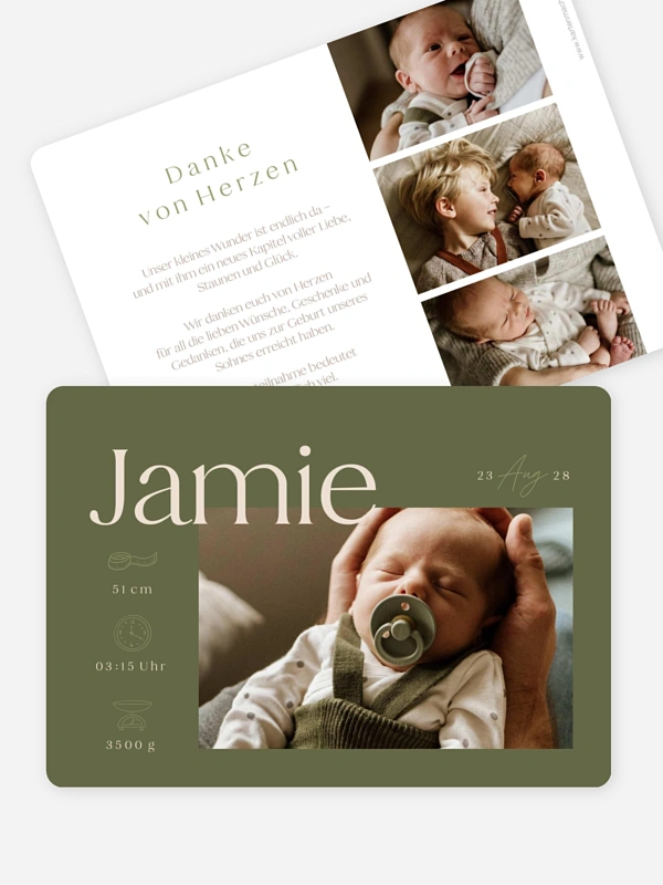 Mit der Geburtskarte "Magie des Lebens" teilst du das große kleine Wunder der Geburt mit all deinen Liebsten. Das liebevolle Design bringt die ersten Momente voller Nähe und Geborgenheit wunderschön zum Ausdruck und macht deine Ankündigung zu einem besonderen Gruß fürs Herz. Hochwertige Papiere und brillante Druckqualität sorgen dafür, dass deine Erinnerungen lange lebendig bleiben.