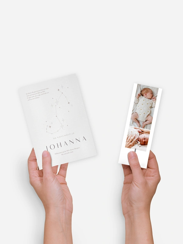 Mit der Geburtskarte "Sternbild Skorpion" kündigst du die Ankunft deines Babys auf eine ganz besondere Weise an. Das liebevolle Design mit passendem Sternzeichenmotiv verbindet Himmel und Herz und macht deine Botschaft zu einem kleinen Wunder zum Verschicken. Hochwertige Papiere und brillante Druckqualität sorgen dafür, dass deine Karte so schön bleibt wie der Moment selbst. Auf Wunsch erhältst du eine kostenlose Musterkarte, damit du dein Design in Ruhe anschauen kannst.