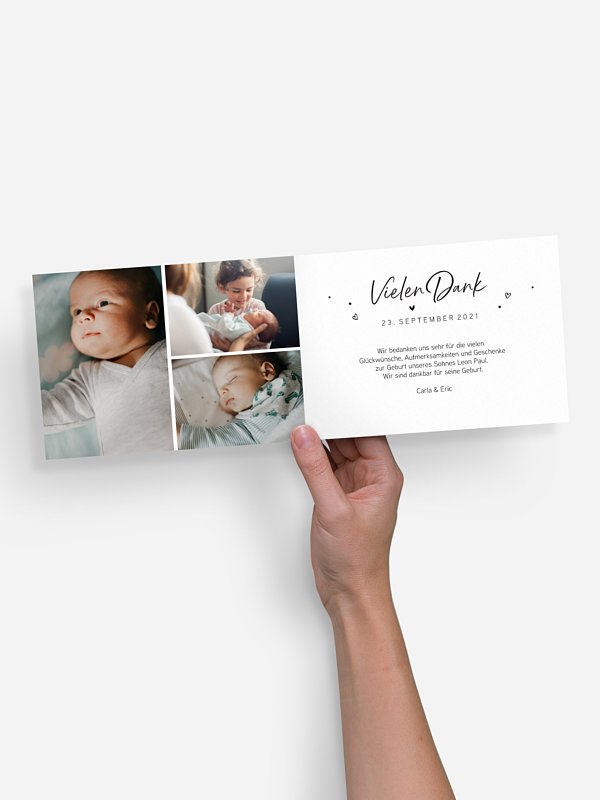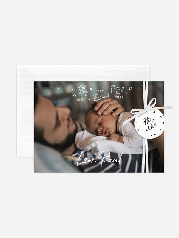 Alles auf einen Blick. Die Karte "That's me" zeigt süß illustriert die wichtigsten Daten auf der Vorderseite und macht Ihren kleinen Schatz zum Star.