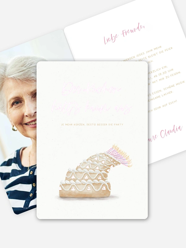 Einladung 70. Geburtstag Collapsing Cake