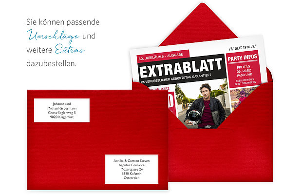 Heute sind Sie auf dem Titelblatt! Die Einladungskarte zum 50. Geburtstag "Extrablatt" verkündet große Neuigkeiten im Zeitungs-Stil.