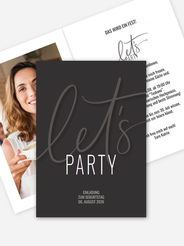 Stilvoll, modern und designstark: Mit den edlen Karten "It's a Party" laden Sie Ihre Liebsten auf bezaubernde Weise zu Ihrem Geburtstagsfest ein.