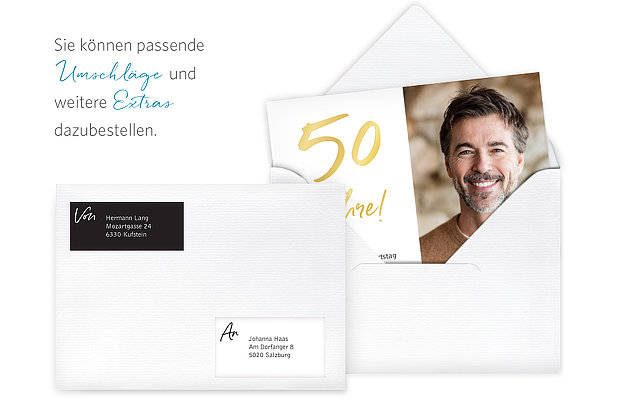 Die veredelte Geburtstagseinladung "Mein Jahr" ist perfekt, um Ihre Gäste zu einem unvergesslichen 50. Geburtstag einzuladen.