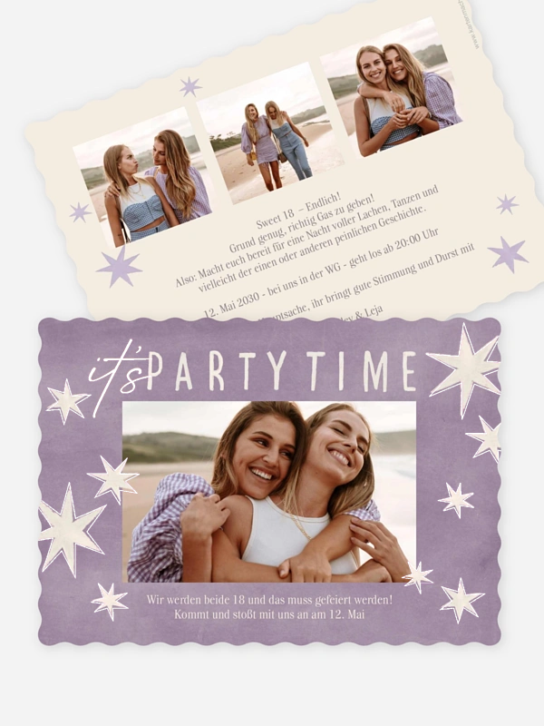 Mit der Geburtstagseinladung "Sparkling Star" startet eure Feier schon lange vor dem großen Tag. Verspielte Sterne und lebendige Fotomomente machen diese Einladung zum Geburtstag zu einem echten Gute-Laune-Boten für eure Lieblingsmenschen. Ob großer Meilenstein oder einfach Lust aufs Feiern – die Geburtstagseinladung lässt sich im Gestaltungs-Tool ganz einfach persönlich gestalten. Hochwertige Papiere und eine schnelle Lieferung sorgen dafür, dass eure Einladung genauso entspannt ankommt, wie sie sich anfühlt. Gestalte jetzt deine Einladung und bring schon beim Öffnen ein Lächeln ins Gesicht.