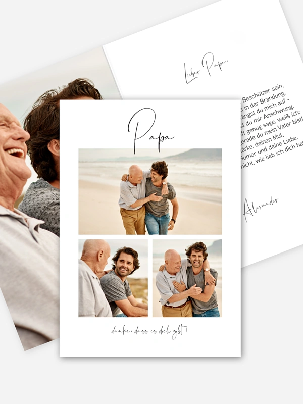 Mit der Grußkarte "Fotospiel" können Sie zu Vatertag die schönsten Familienmomente versenden.