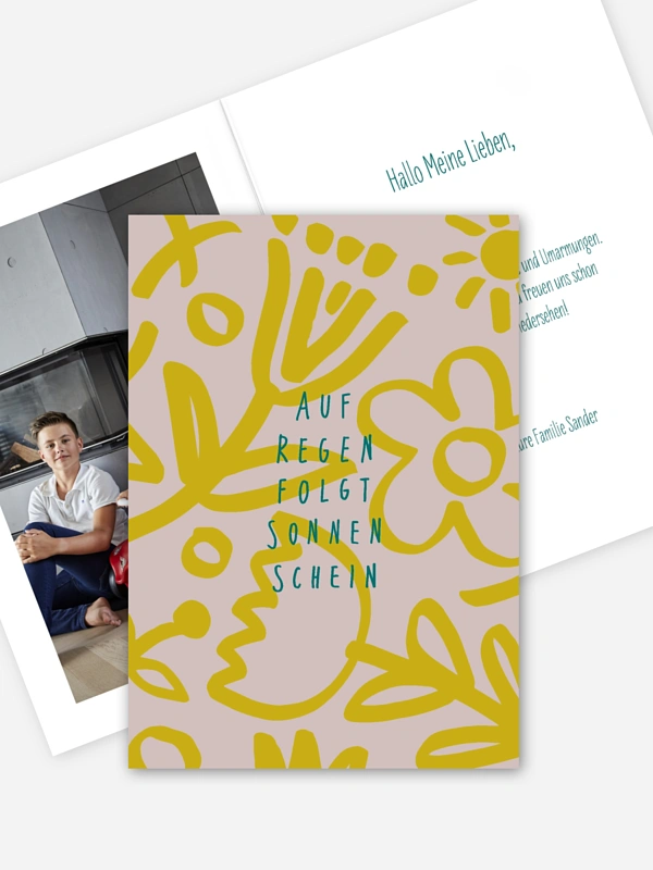 Versenden Sie mit der Grußkarte "Sonnenschein" Mut und Kraft. So wie die Karte schon sagt, nach Regen folgt Sonnenschein.
